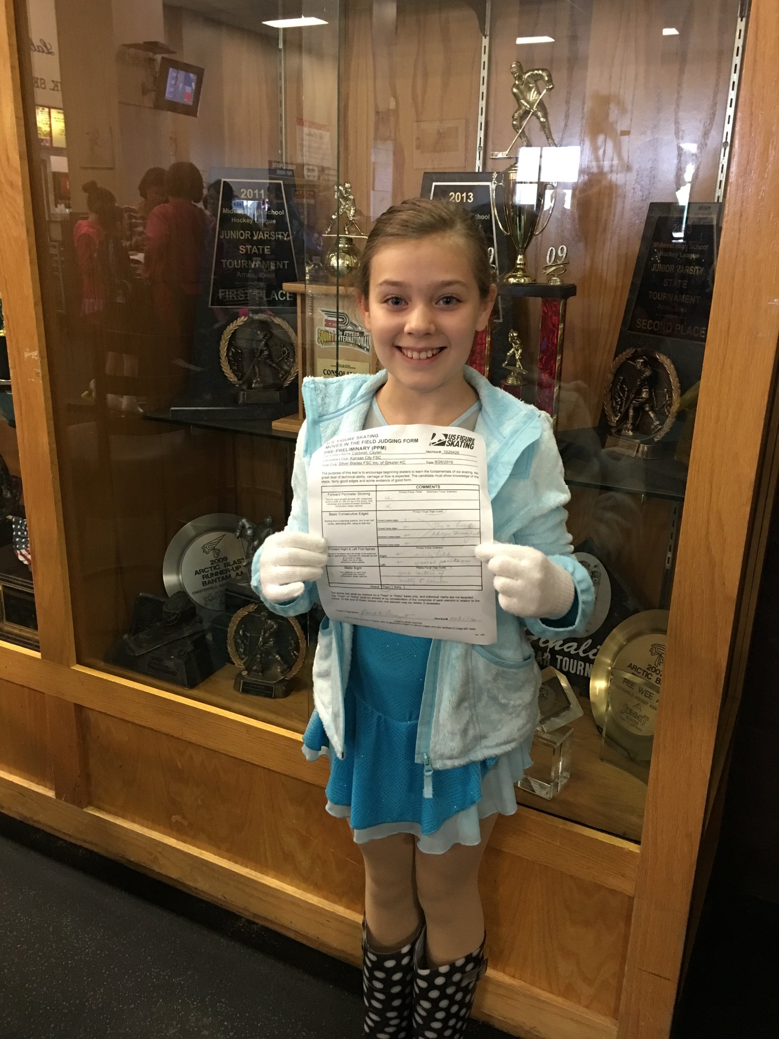 Klaranda Behrens recently earned her fourth, yes fourth, gold medal. She has passed her senior moves in the field, senior free skate, gold solo dance, and gold solo free dance.